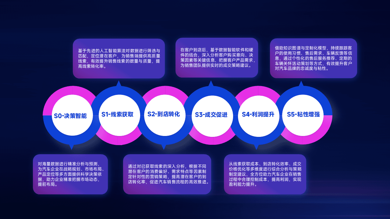 通过拓宽潜在客户来源、、、优化线索分配并提高到店转化率,,,,以增强销售效率。。。同时,,,利用线索数据不断优化分析模型,,,有效提升转化率,,,扩大营销影响力。。。。